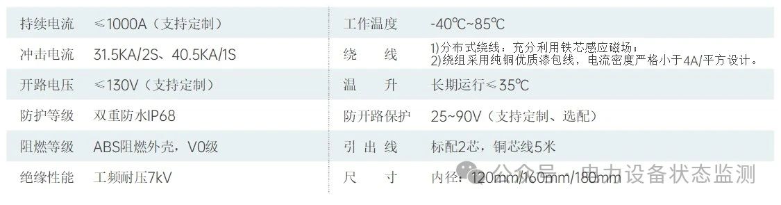 取電互感器采用IP68級防水、鐵芯納米層防銹及V0級阻燃設(shè)計,內(nèi)置專業(yè)型開路保護(hù)器(保護(hù)啟動后電壓有效值Vrms<2V),大電流容量設(shè)計讓額定滿載電流時溫升≤35℃,保障了現(xiàn)場的安全便捷安裝及長期無憂的安全穩(wěn)定運行。